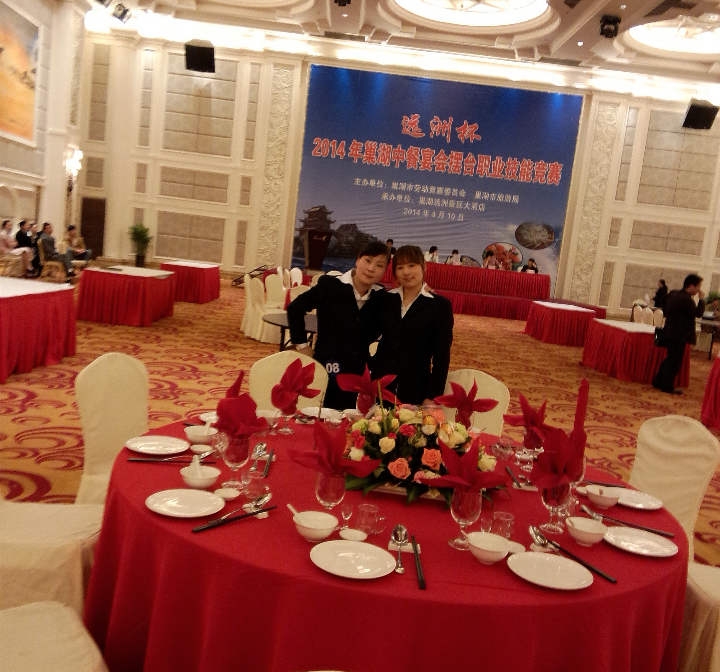 4月10日下午,巢湖市十大行業(yè)系列競(jìng)賽“中餐擺臺(tái)職業(yè)技能競(jìng)賽”在遠(yuǎn)洲豪庭五星酒店舉行。富煌賓館選派的選手楊軍平、王外明參加了比賽。在來(lái)自全市餐飲業(yè)眾多專業(yè)人員的比賽中,楊軍平、王外明兩位選手憑借過(guò)硬的基本功和高超的職業(yè)技能,技?jí)喝悍迹〉昧藘?yōu)異成績(jī)。經(jīng)專家評(píng)委評(píng)定,她們分別以第八名和第十二名獲得優(yōu)秀獎(jiǎng)。這是巢湖市非餐飲專業(yè)唯一獲此殊榮的參賽選手。