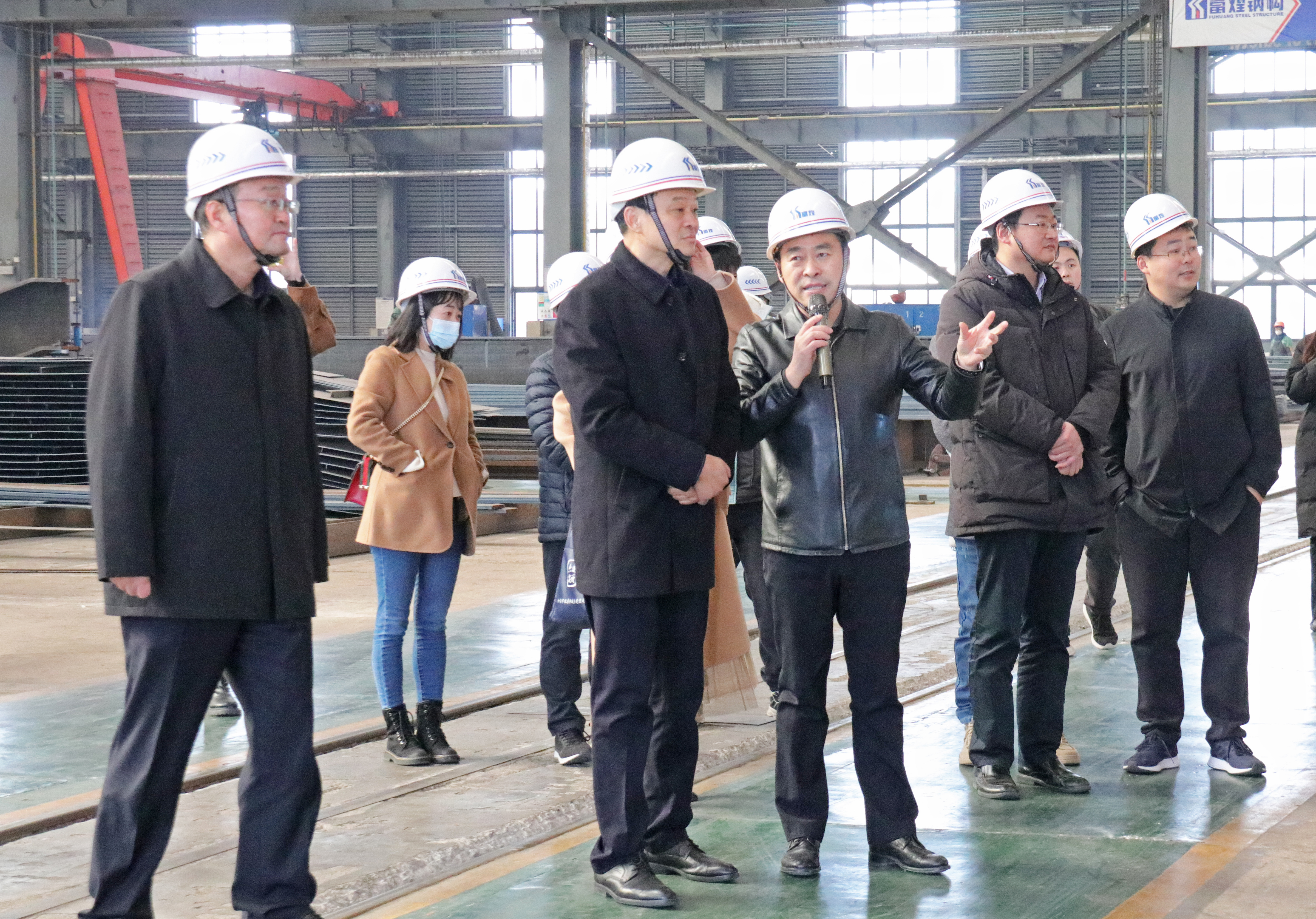 近日,安徽省住房和城鄉(xiāng)建設(shè)廳建筑節(jié)能與科技處處長(zhǎng)陳必喜一行領(lǐng)導(dǎo)與專家蒞臨富煌集團(tuán),順利開(kāi)展“發(fā)展裝配式建筑推進(jìn)雙碳”專題調(diào)研活動(dòng)。安徽省住房和城鄉(xiāng)建設(shè)廳建筑節(jié)能與科技處一級(jí)調(diào)研員陳小滿、副處長(zhǎng)朱力、副處長(zhǎng)胡浩威、一級(jí)主任科員張璐;安徽省建筑節(jié)能與科技協(xié)會(huì)副會(huì)長(zhǎng)兼秘書(shū)長(zhǎng)葉長(zhǎng)青、副秘書(shū)長(zhǎng)李璐、副秘書(shū)長(zhǎng)許康、宣傳部部長(zhǎng)梁倩、工程師劉洋洋;安徽省裝配式建筑研究院、安徽建筑大學(xué)副院長(zhǎng)、教授劉運(yùn)林等專家參加此次調(diào)研,富煌集團(tuán)黨委書(shū)記劉宏,黨委副書(shū)記、副總裁張艷紅,富煌鋼構(gòu)董事長(zhǎng)曹靖,副總裁沈萬(wàn)玉全程陪同。