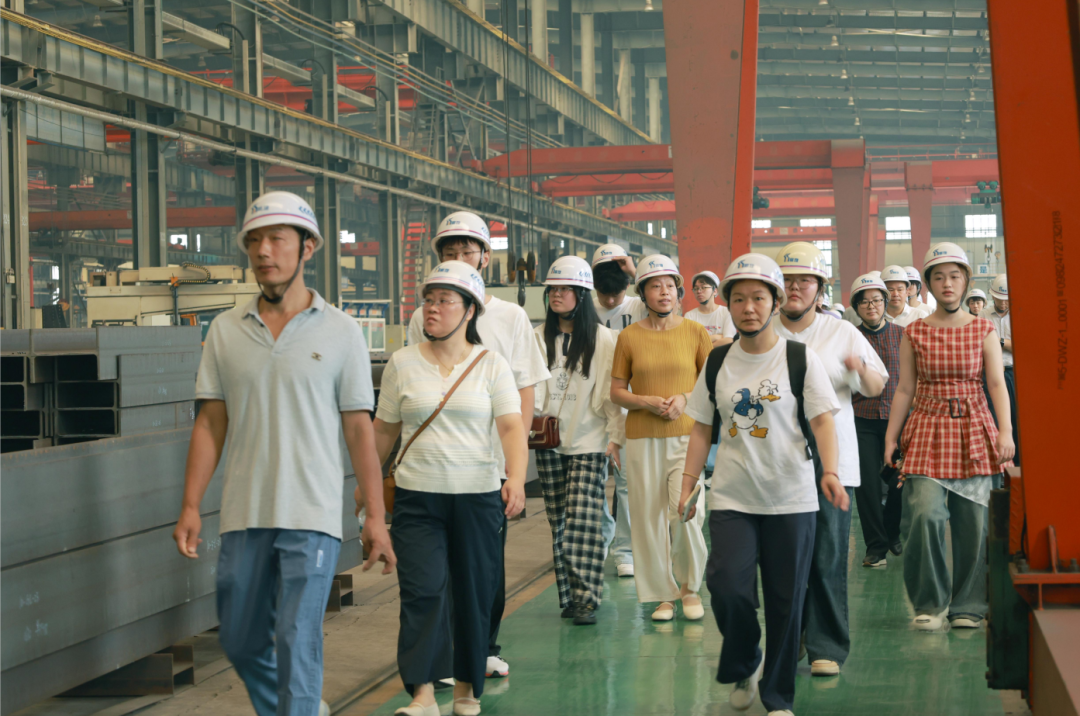 慶功宴正式開始前,學(xué)子們走進富煌工業(yè)園,通過參觀企業(yè)生產(chǎn)場景、觀看企業(yè)宣傳片,深入了解富煌的發(fā)展歷程、業(yè)務(wù)板塊、產(chǎn)品體系與企業(yè)文化。在親身體驗父母日常工作環(huán)境的過程中,他們對父母耕耘多年的這片熱土有了更直觀的認(rèn)知,更深刻體會到父母日常勞動的艱辛,感恩之情與職業(yè)認(rèn)同感在心底悄然滋長。