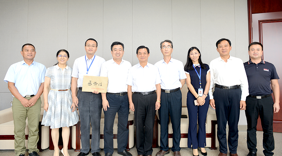 8月17日,安徽省政府參事室黨組書記、主任白和平攜省政府參事室辦公室相關(guān)人員、霍邱縣彭塔鄉(xiāng)西隱賢村黨支部書記趙以松親臨富煌集團(tuán),送來一封感謝信。感謝富煌集團(tuán)對(duì)西隱賢村的幫扶和關(guān)懷,對(duì)省政府參事室扶貧工作的大力支持。富煌集團(tuán)董事長(zhǎng)楊俊斌熱情接待了白和平一行。