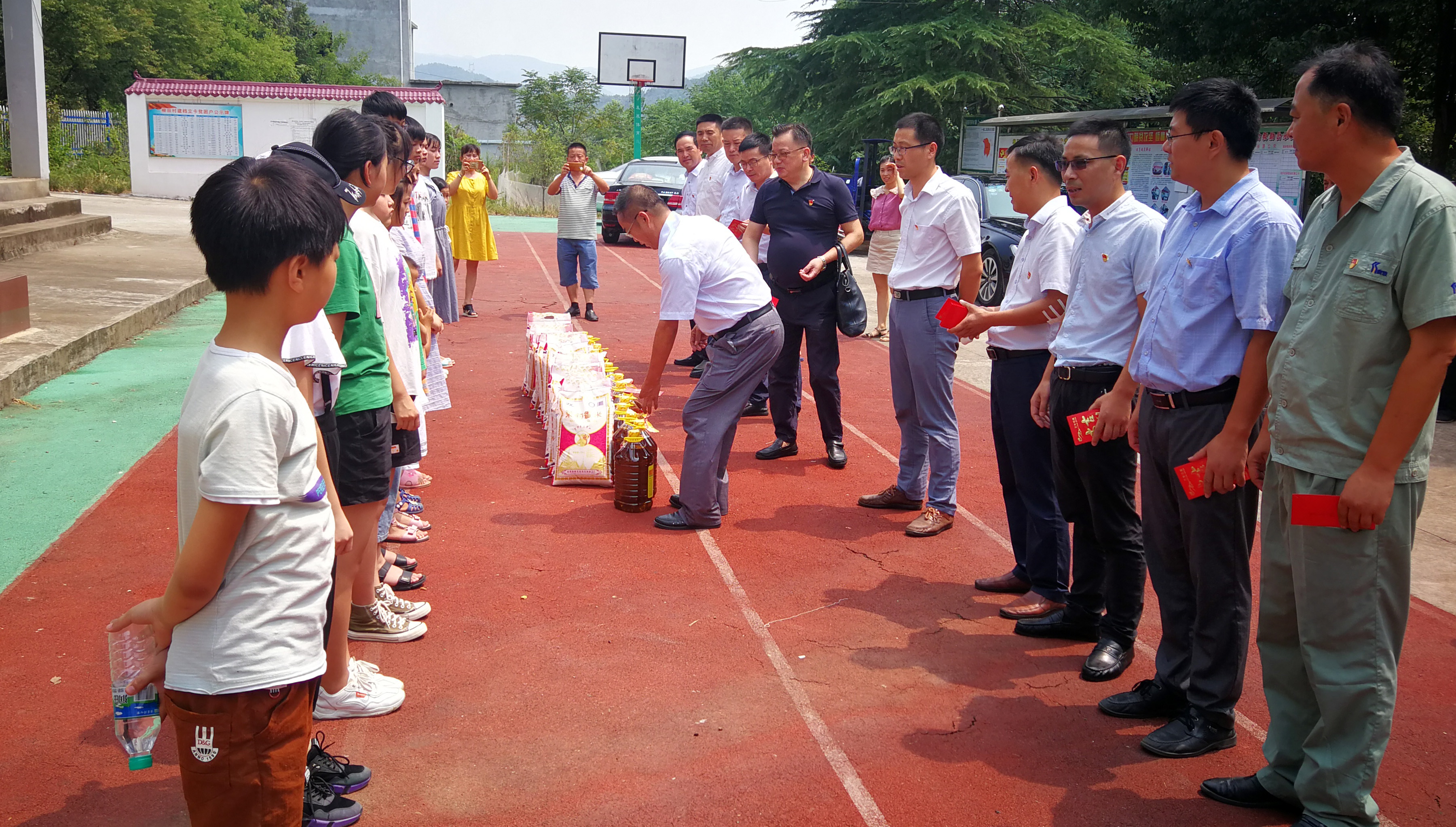 隨后,江西富煌參加此次活動(dòng)的同志們以個(gè)人名義為孩子們送去資助金及大米、食用油等生活物資。