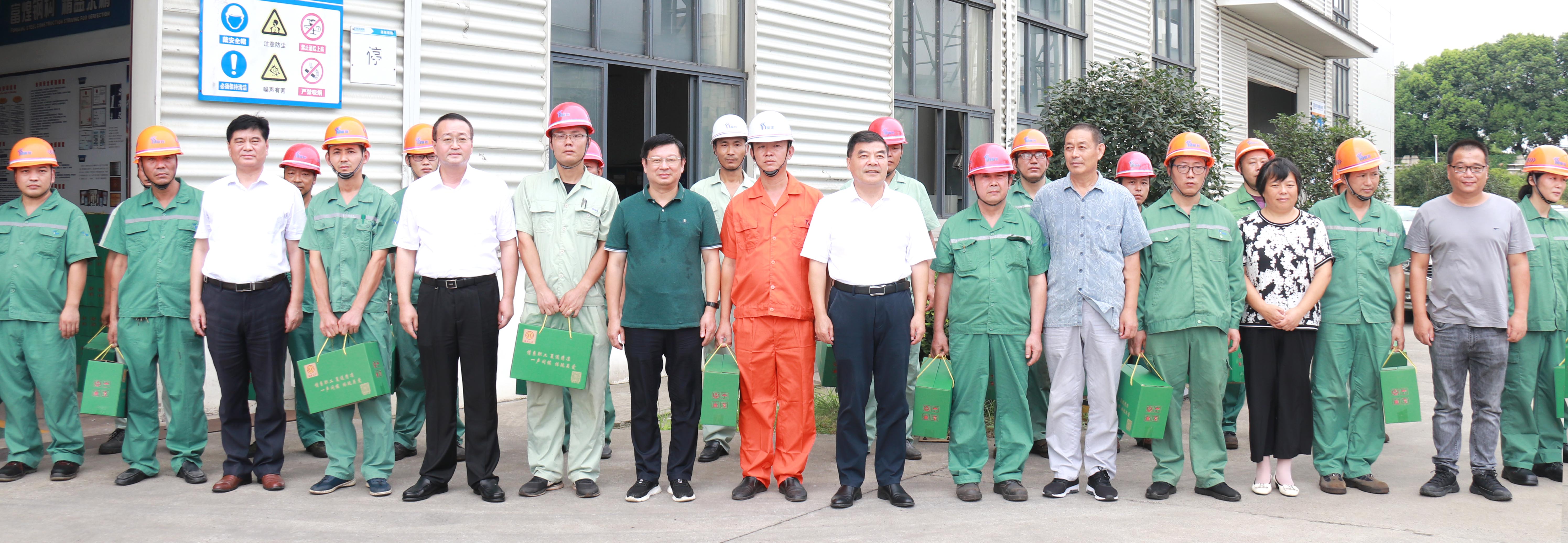 為切實(shí)做好防暑降溫工作,促進(jìn)企業(yè)安全生產(chǎn),確保廣大職工平安度夏,8月12日,巢湖市人大常委會(huì)主任、黨組書記周恩平,市人大常委會(huì)副主任張勇華,市總工會(huì)黨組書記、主席彭立蘭,黃麓鎮(zhèn)黨委書記楊華松等領(lǐng)導(dǎo)攜消暑慰問物品蒞臨富煌集團(tuán)開展慰問活動(dòng)。富煌集團(tuán)黨委書記劉宏全程陪同。