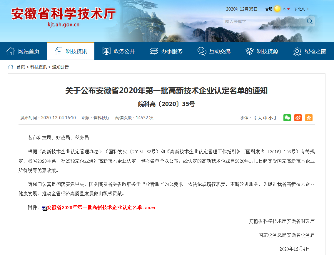日前,安徽省科技廳、國(guó)稅局等部門聯(lián)合認(rèn)定并公布了2020年第一批通過(guò)認(rèn)定的高新技術(shù)企業(yè),富煌集團(tuán)旗下五家企業(yè)獲得高新技術(shù)企業(yè)認(rèn)定。