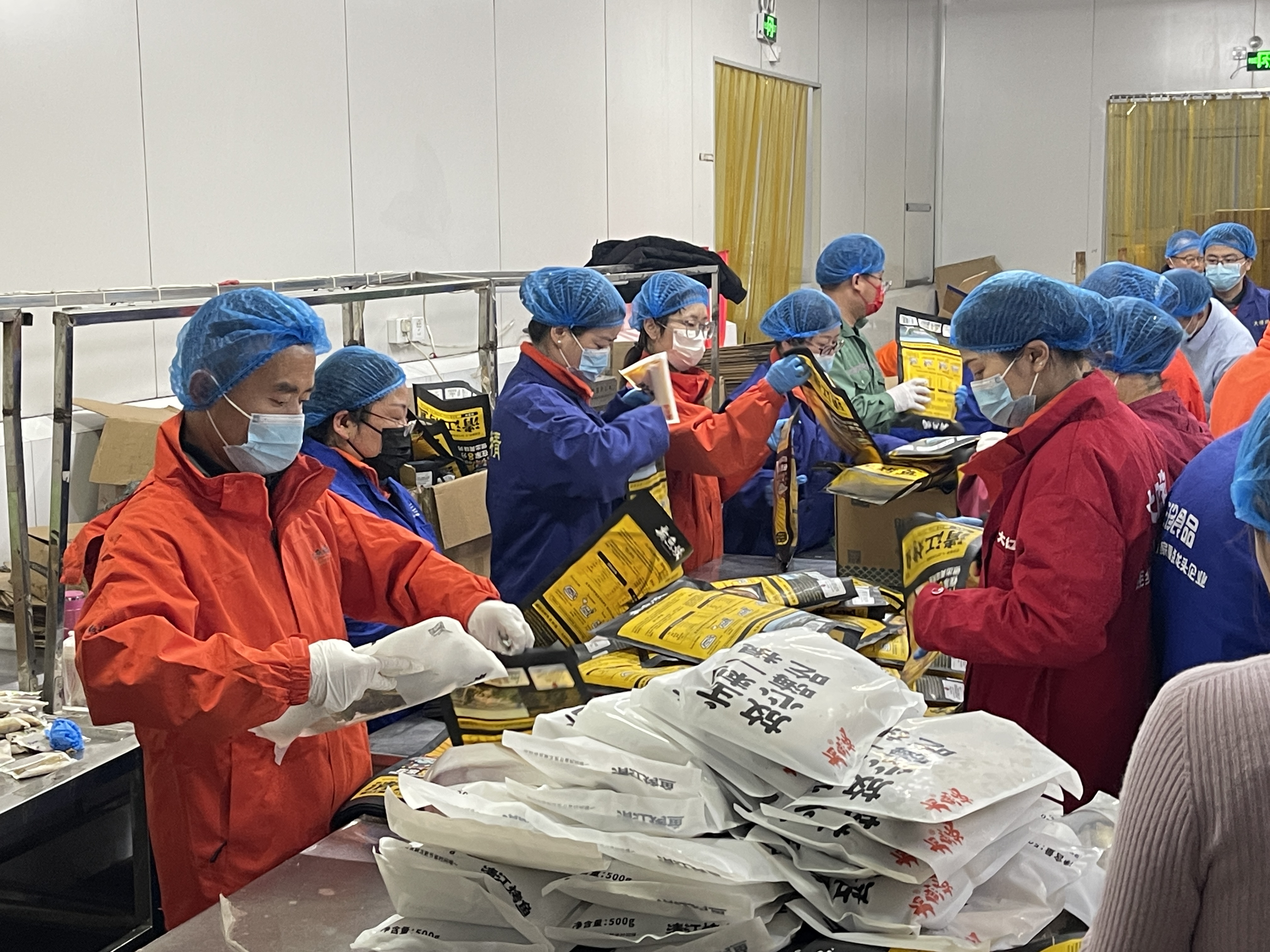 黨員示范搶訂單生產(chǎn)(左一 三珍公司黨支部書記倪寶友)