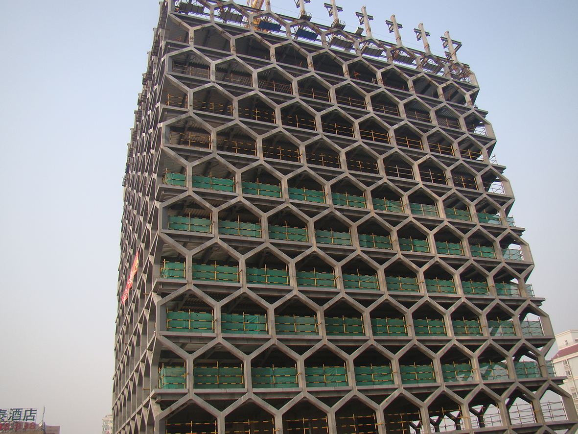 該課題深入研究了類“蜂窩形”鋼結(jié)構(gòu)體系在超高層建筑中的關(guān)鍵技術(shù),主要包括類“蜂窩形”、“十字形”、“網(wǎng)格形”等為基本結(jié)構(gòu)單元的復(fù)雜節(jié)點(diǎn)在高層、超高層鋼結(jié)構(gòu)建筑中的受力分析、基于三維軟件模擬的新型構(gòu)件節(jié)點(diǎn)深化設(shè)計(jì)方法、類“蜂窩形”鋼結(jié)構(gòu)外筒與鋼筋混凝土核心筒之間存在兩種結(jié)構(gòu)材料施工豎向協(xié)調(diào)成形等技術(shù)問(wèn)題,有效解決了成品加工的全過(guò)程精度控制難題和超高層鋼結(jié)構(gòu)建筑雙Y型、斜交網(wǎng)格鋼框架結(jié)構(gòu)高空吊裝與原位焊接的技術(shù)難題,有效提高了類“蜂窩形”鋼結(jié)構(gòu)體系超高層建筑的建造精度,保證了工程質(zhì)量,整體提升了我國(guó)超高層鋼結(jié)構(gòu)建筑建造技術(shù)水平。