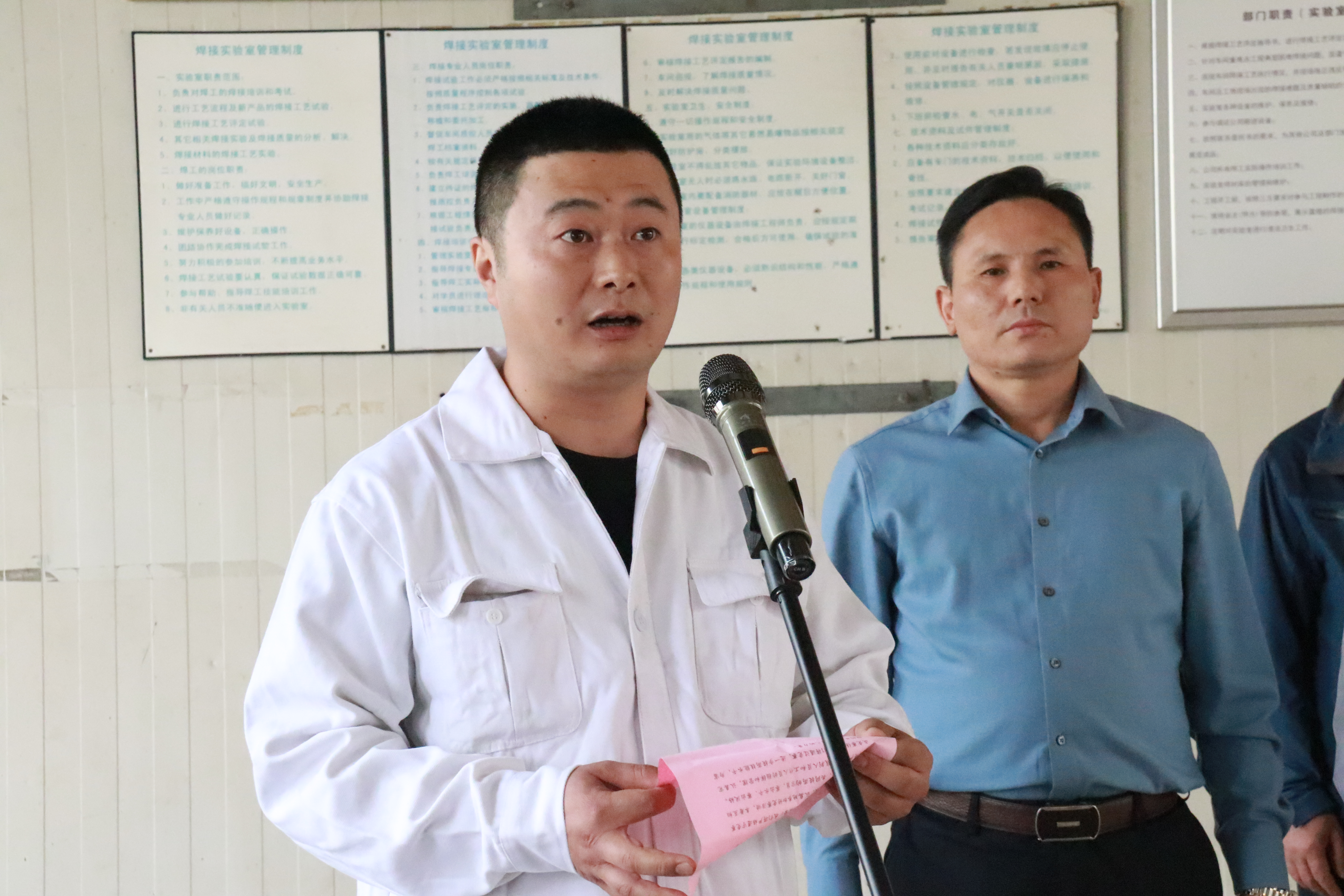 三分廠員工葛浩和恒德公司工藝設(shè)計部部長于杰分別作為參賽選手代表和裁判員代表進行宣誓。