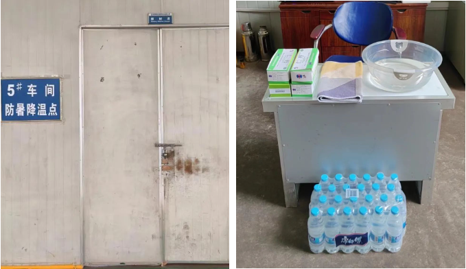 在所有車間內(nèi)設(shè)置“防暑降溫點(diǎn)”,配備防暑降溫藥品和用品,以便員工在高溫下遇到不適時(shí)得到及時(shí)處理。針對(duì)特殊崗位員工發(fā)放防暑降溫禮盒以示關(guān)懷。