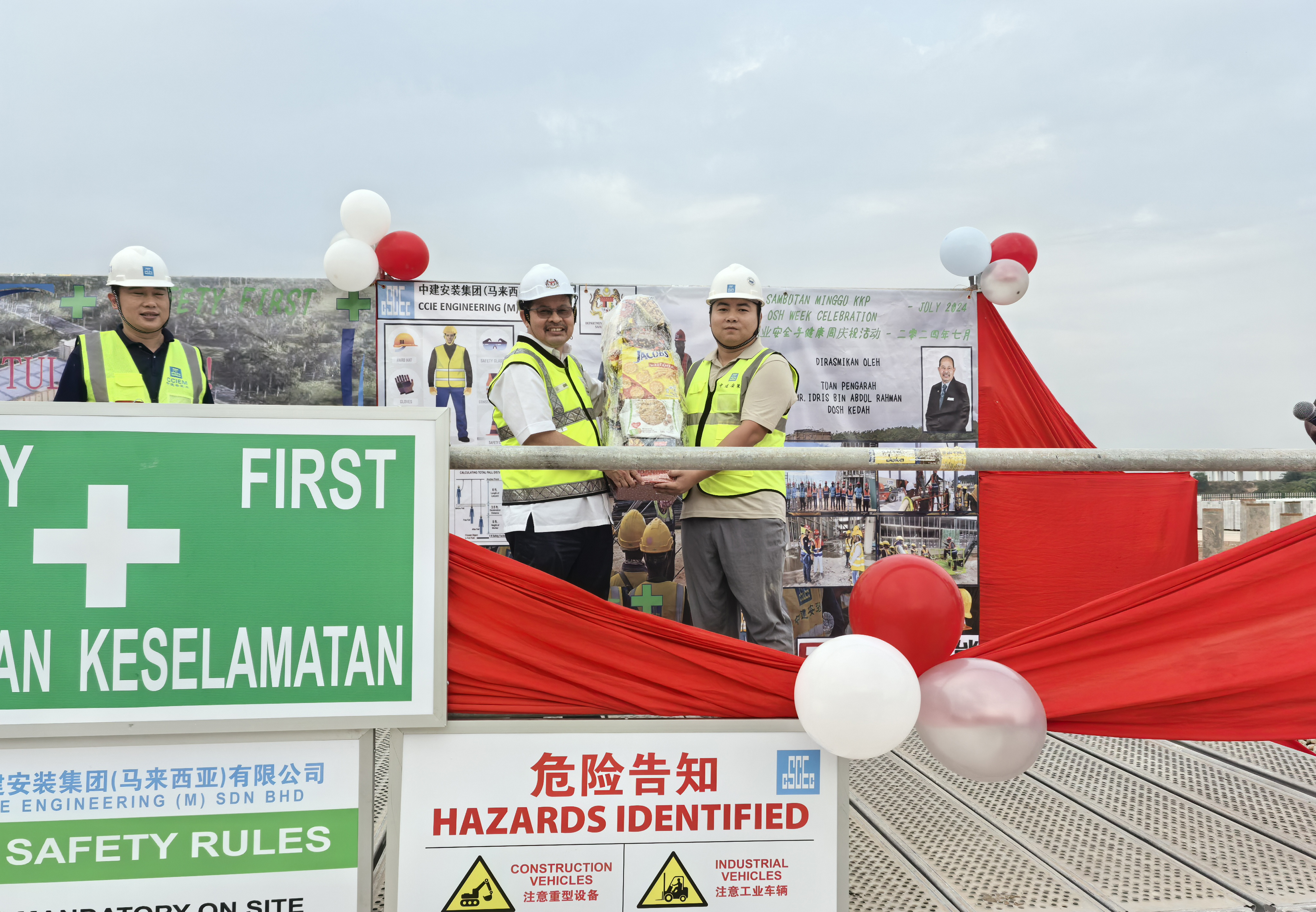 為慶祝江西富煌承建的億緯馬來西亞一期項目施工總承包項目達標一百萬安全工時,馬來西亞吉打州安全局于7月31日在項目現(xiàn)場成功舉辦職業(yè)安全與健康周慶?;顒?。活動上,馬來西亞吉打州安全局局長Idris.Bin.Abdul.Rahman先生為項目部頒發(fā)了“安全管理優(yōu)秀分包商獎”。