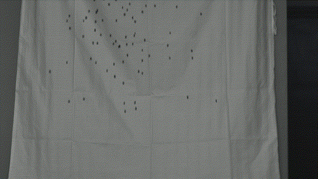 在一項(xiàng)針對(duì)數(shù)百個(gè)快速移動(dòng)黑色小球進(jìn)行拋落實(shí)驗(yàn)追蹤驗(yàn)證中,由于黑色小球表面顏色單一缺乏明顯紋理特征,屬于典型低特征場(chǎng)景,通過(guò)空間聚類MOT的幾何重建技術(shù),獲取了黑色小球準(zhǔn)確的位置信息,利用2D投影剔除一對(duì)多誤匹配方法,提高了軌跡的唯一性和準(zhǔn)確性,再進(jìn)一步通過(guò)對(duì)軌跡進(jìn)行擬合分析識(shí)別并修正錯(cuò)誤軌跡連接,增強(qiáng)跟蹤結(jié)果的穩(wěn)定性和可靠性。