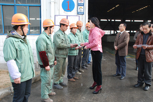 為履行富煌集團(tuán)董事長楊俊斌“走進(jìn)富煌就不讓你過苦日子”的承諾,富煌集團(tuán)“愛心救助基金會(huì)”會(huì)長周伊凡率領(lǐng)集團(tuán)工會(huì)負(fù)責(zé)人于2013年1月31日深入各分子公司和生產(chǎn)車間,分別為55位困難員工送去了慰問金,并向他們致以春節(jié)問候。周伊凡勉勵(lì)大家,要堅(jiān)定戰(zhàn)勝困難的信心,認(rèn)真努力工作,企業(yè)會(huì)一如既往的關(guān)心員工的疾苦,幫助困難員工,讓困難員工與大家一道過上幸福美滿的生活。