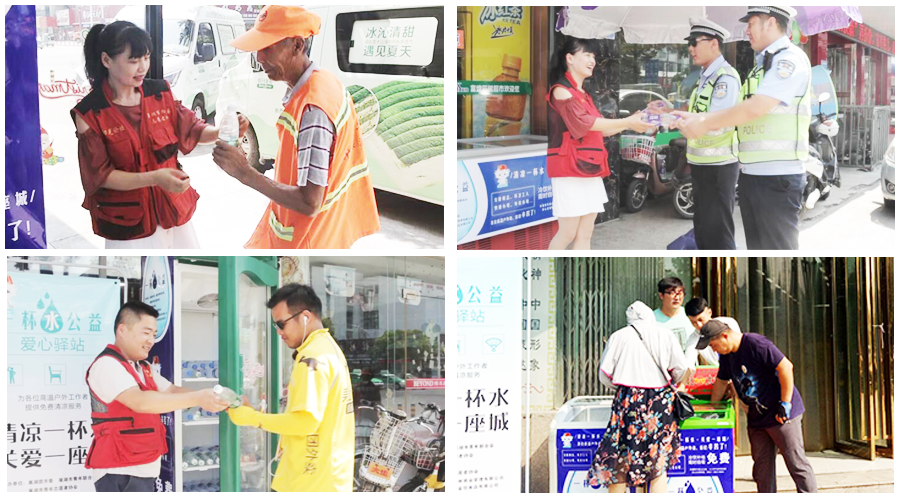 此次活動,富煌超市免費提供冰柜,在主辦單位的統(tǒng)籌協(xié)調(diào)下,于人民路、巢湖路、團(tuán)結(jié)路、向陽路等市區(qū)主要道路建立愛心驛站,向環(huán)衛(wèi)工人、交警輔警、送餐員、快遞員等戶外勞動者提供免費送水服務(wù)。