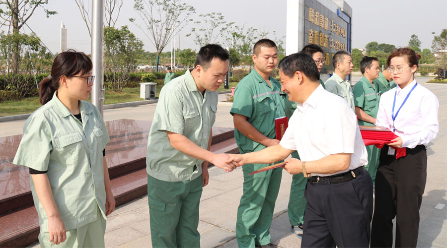 在2019年5月20日的富煌集團(tuán)升旗儀式上,富煌集團(tuán)黨委書(shū)記、工會(huì)主席劉宏宣讀了各分子公司勞動(dòng)技能競(jìng)賽各項(xiàng)目的第一名獲得者,富煌集團(tuán)董事長(zhǎng)楊俊斌為獲得第一名的選手頒發(fā)了獎(jiǎng)牌與獎(jiǎng)金。