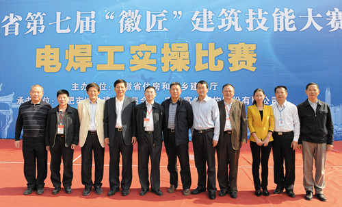 1023上午,由安徽省住房和城鄉(xiāng)建設廳主辦,合肥市城鄉(xiāng)建設委員會、富煌鋼構股份有限公司共同承辦的安徽省第七屆"徽匠"建筑技能大賽電焊工實操比賽在富煌焊接研究所隆重舉行。省住房和城鄉(xiāng)建設廳副廳長曹劍、建筑市場管理處處長陳幼年、調(diào)研員張行遠、盛世福,合肥市城鄉(xiāng)建設委員會建筑業(yè)管理處處長王榮村,富煌鋼構總經(jīng)理戴陽、副總經(jīng)理曹玉林、總經(jīng)理助理劉宏、沈萬玉等省市及公司領導親臨大賽現(xiàn)場觀摩。