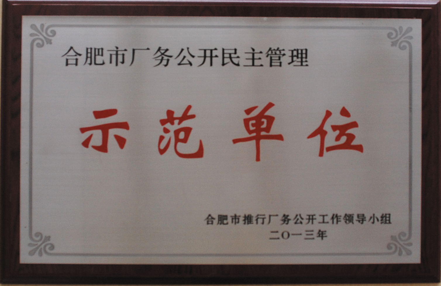 近日,富煌集團被合肥市推行廠務公開工作領導小組授予“合肥市廠務公開民主管理示范單位”稱號。